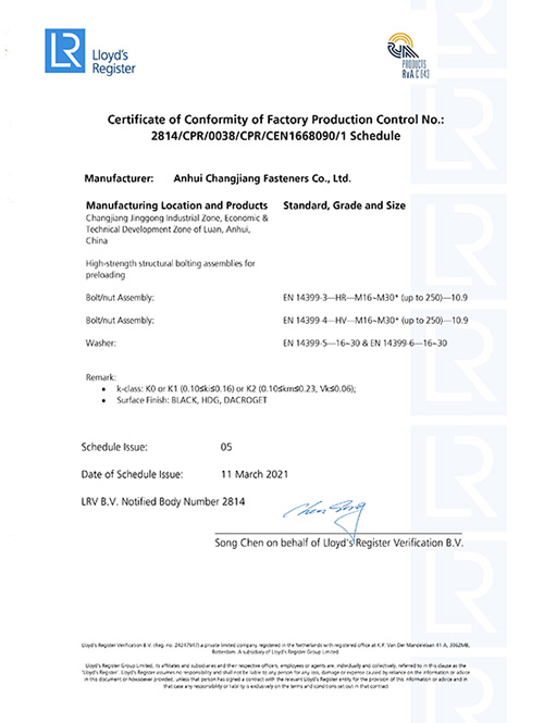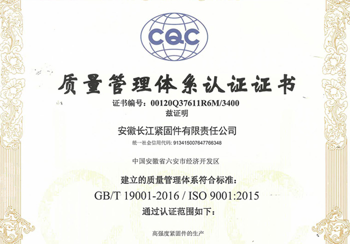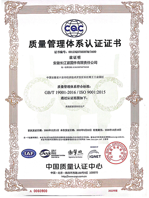 公司與燕山大學所等合作,聘請頂級專家組建研發團隊,堅持走產學研用發展思路,專注于新型緊固件產品研發,公司研發的產品有高強度抗延遲斷裂螺栓、汽車螺栓、不銹鋼螺栓、美標螺栓、德標螺栓及日標螺栓等。 長江緊固件的產品品質位居國內同行業領先水平,已通過國家ISO9001:2016質量管理體系及歐標CE體系認證,產品經國家質量監督總局、緊固件和焊接材料技術研究所、中冶建筑研究總院等多家檢測機構檢測認定,被中國金屬結構行業的權威機構——金屬結構行業協會評定為行業推薦產品。