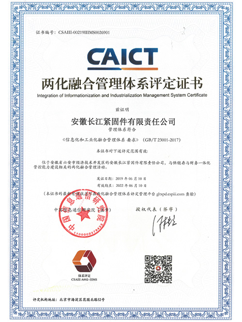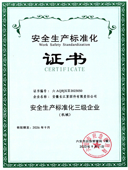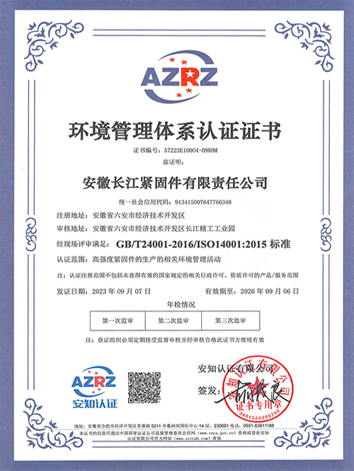 安徽長江緊固件有限責任公司位于安徽省六安市經濟技術開發區,于2005年建成投產,系長江精工鋼結構(集團)股份有限公司(股票代碼:600496)全資子公司。是專注于鋼結構用高強度螺栓細分市場的行業領跑者,其“長緊”牌螺栓已成為國內知名品牌。